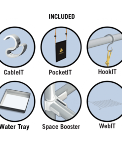 | Accessories included | 1x Par HookIT – kroge til lyset 15x CableIT – klips til kabler og net 1x PocketIT – Lomme til tilbehær med justerbar højde |